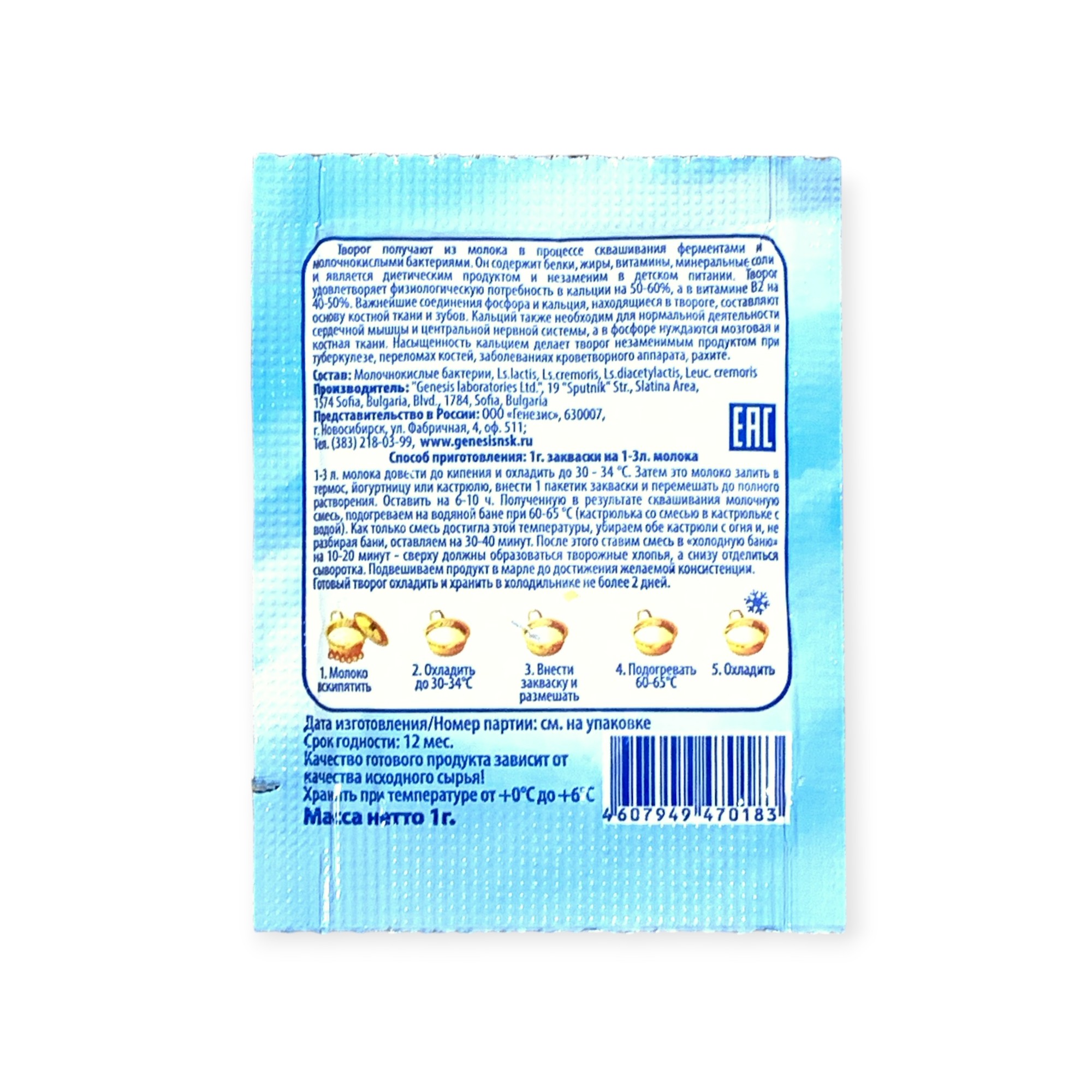 Закваска Творожок Genesis, 1 пакет от 100 руб. с доставкой. Пункт выдачи в Волосово. Интернет магазин по сыроделию. Всё всегда в наличии.